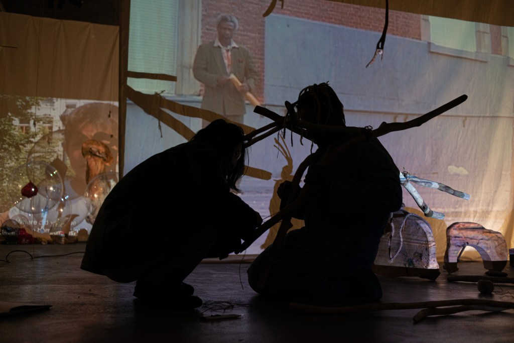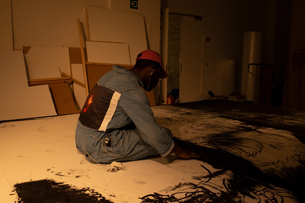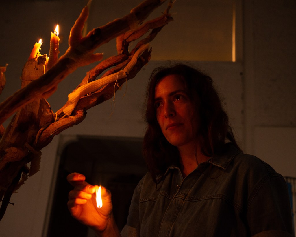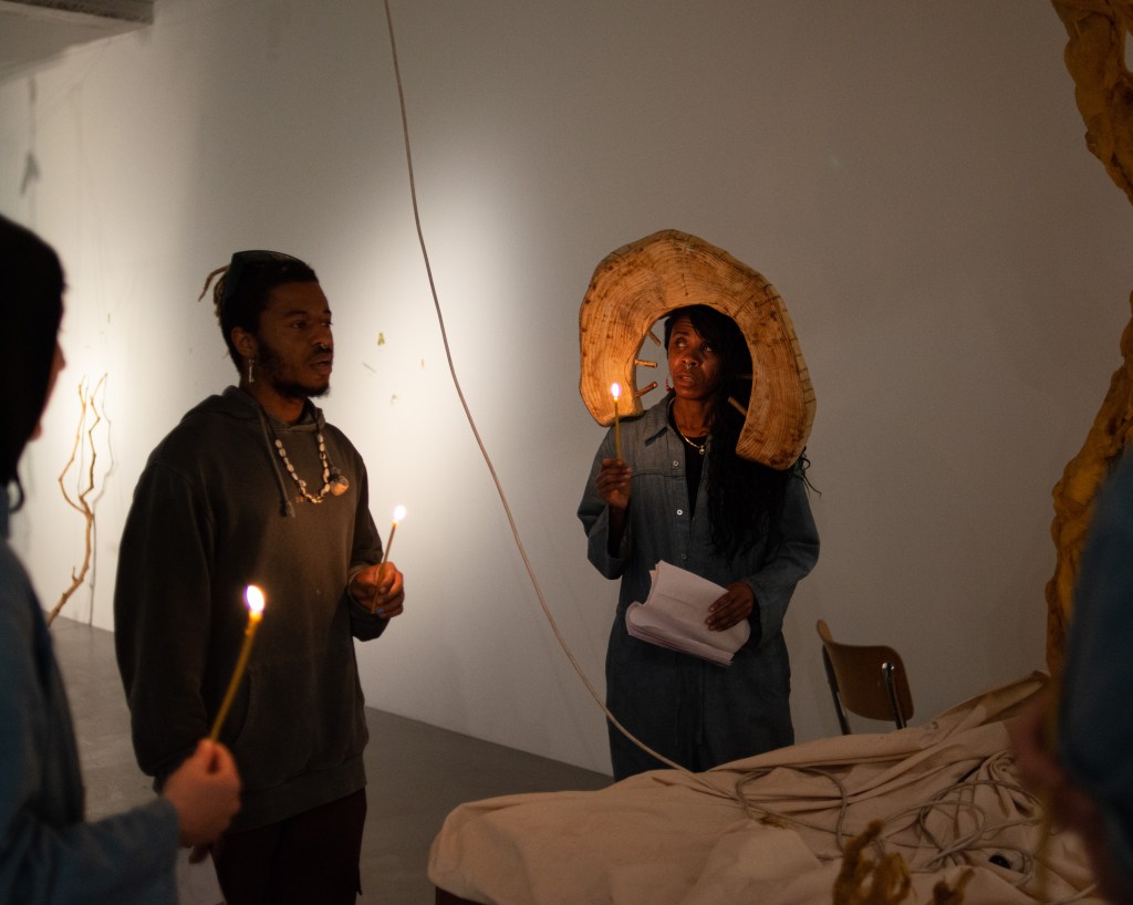 ‘This Is What You Came For’ culminated into a procession through Brussels with a sculpture of a beeswax tree mounted on copper, carried by the whole team and lit in front of Bozar. “A tree covered in beeswax, with formless, melted contours. Sculpted by the flames, now extinguished, but present in the traces they leave in the exhibition. Traces of a ritual that took place on the evening of the opening when the wax tree was paraded through the streets of Brussels, from the CENTRALE to Bozar, where it was lit on fire. The tree was carried by members of The BARЯA Movement, a collective of artists, long time collaborators and former students that has grown organically over the last few years and fits within her practice.” ©Bozar