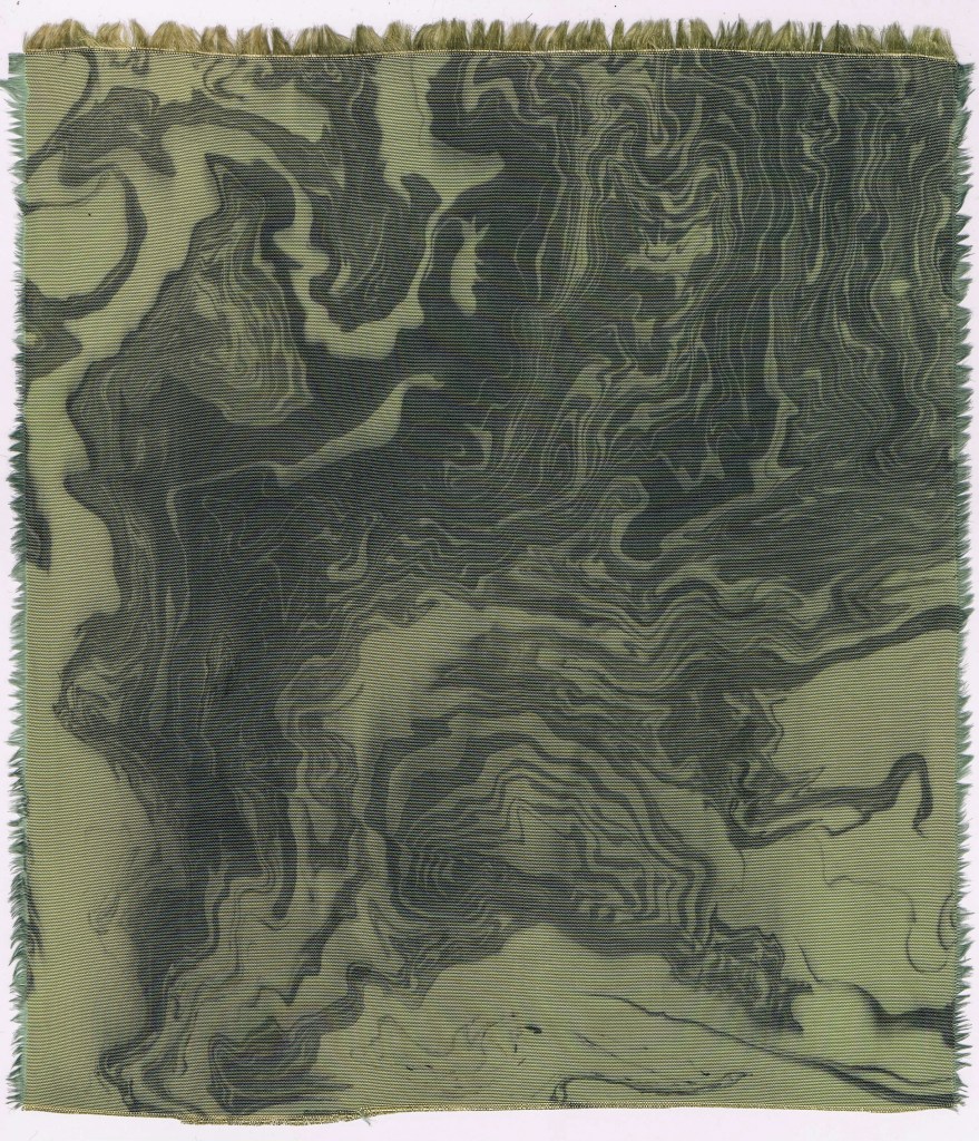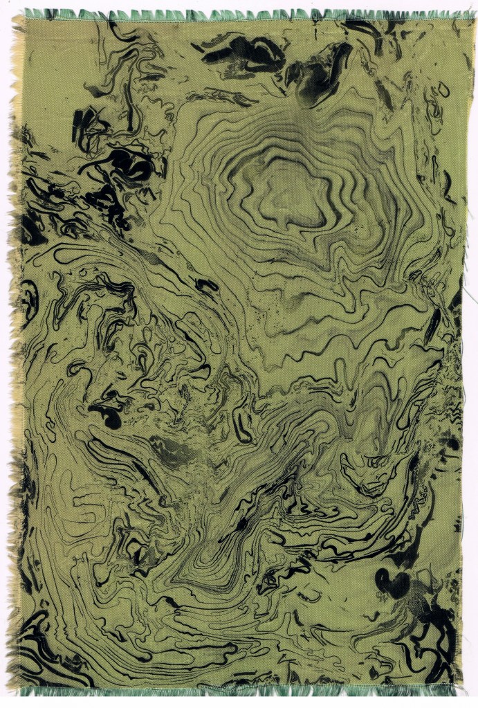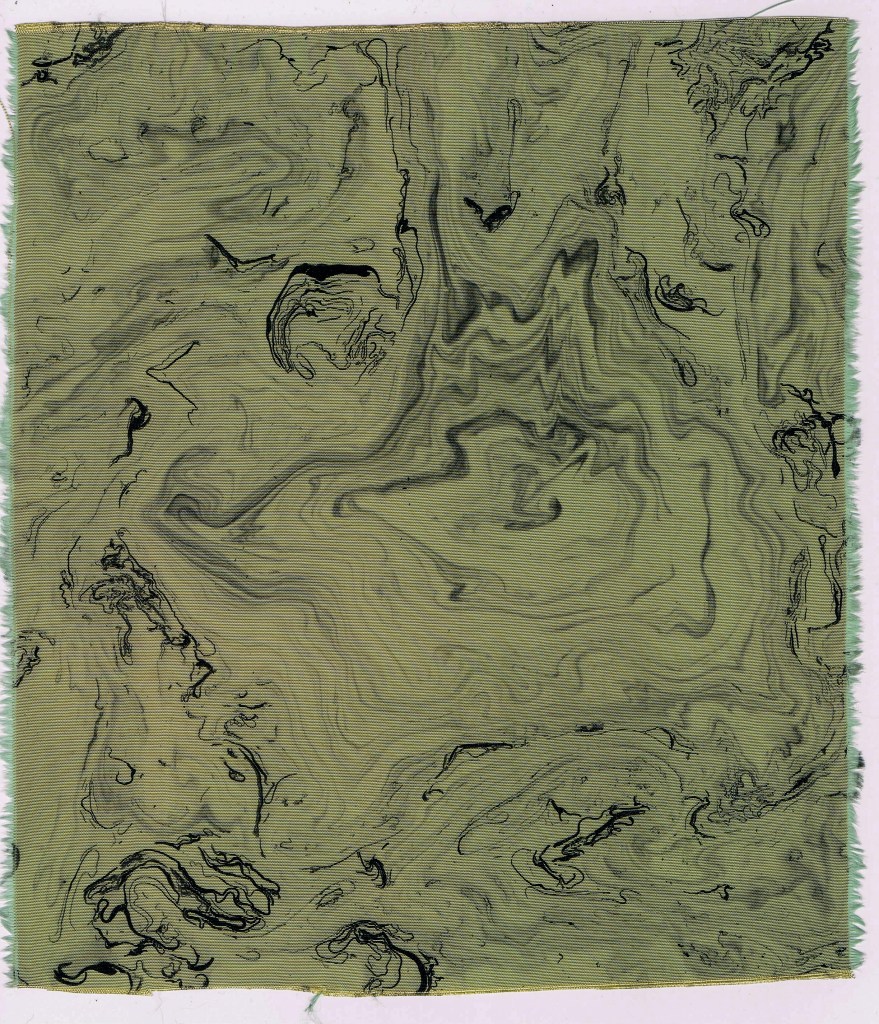 Suminagashi on Textile ; Size range 20 x 22,5 cm / 19 x 27,5 cm ; Unique ; 2024.