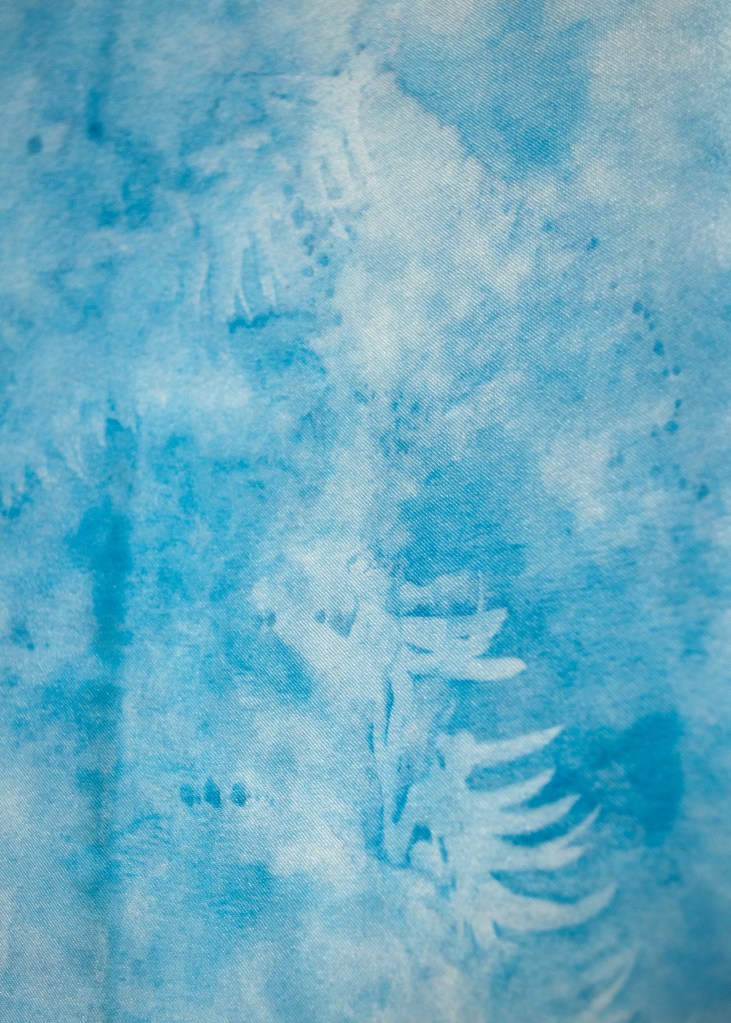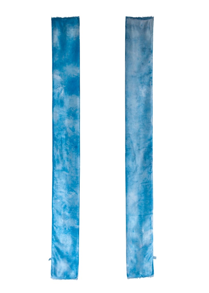 Silky feel scarf ; Cyanotype on Textile ; 15,5 x 146 cm ; Unique ; 2024.