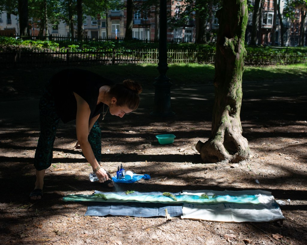 The materialised image takes form as a silky feel scarf and is used in the installation performance “Taxus Dialogue” highlighting the absence of sight in order to stimulate our sensing abilities around the Yew trees and our inseparable connection and integration with the natural world.